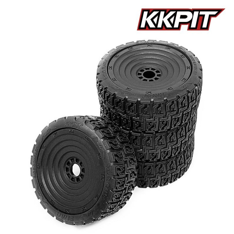 SIMA - Pneus Rallye 1/8 + insert + jante CIRCLE noire [1set]
